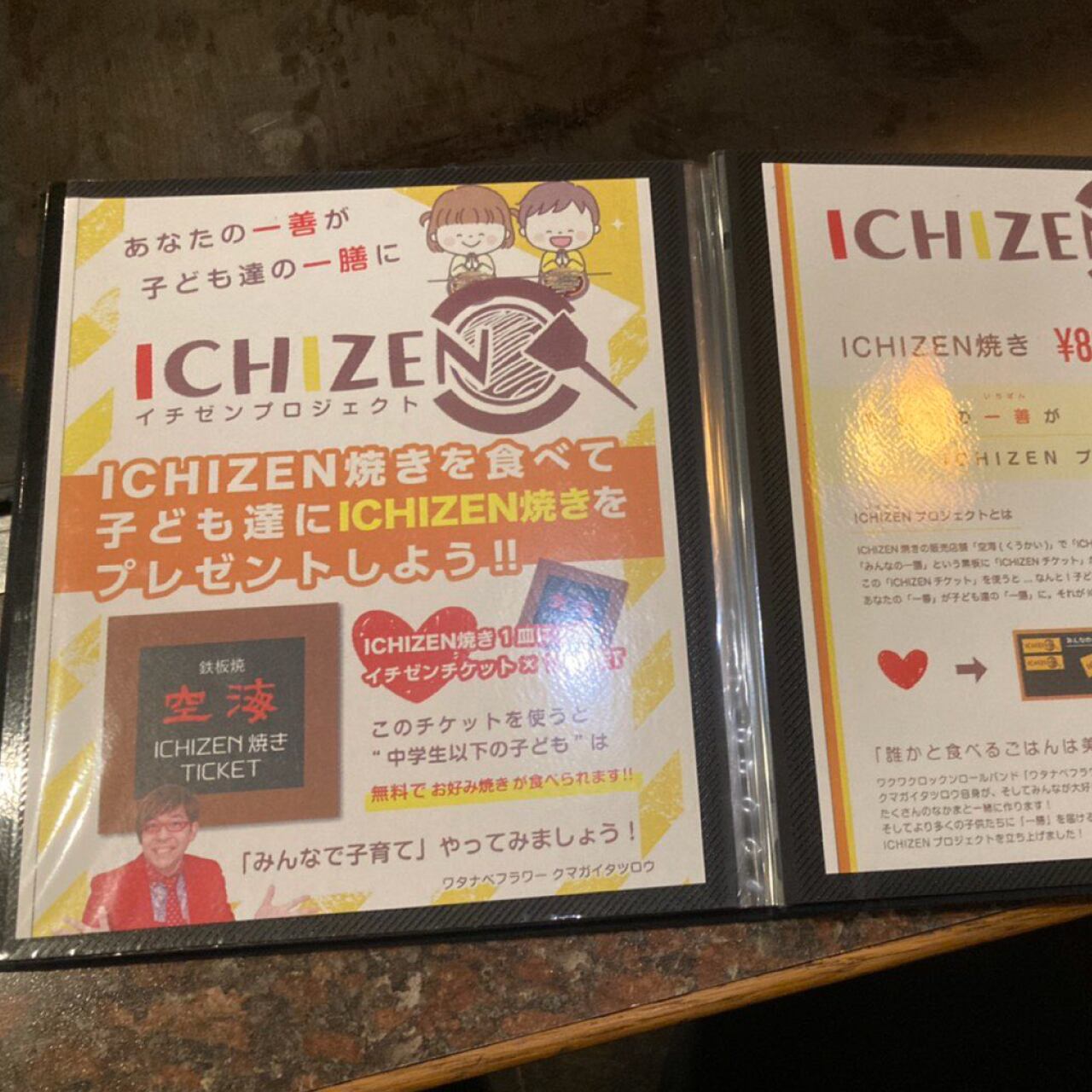 【鉄板焼 空海】1口:1,000円〜 ICHIZENプロジェクトへ支援